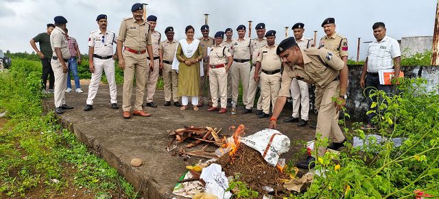 पुलिस अधीक्षक की मौजूदगी में 7 किलो गांजा एवं 131 नग नशीले इंजेक्शन का किया गया नष्टीकरण