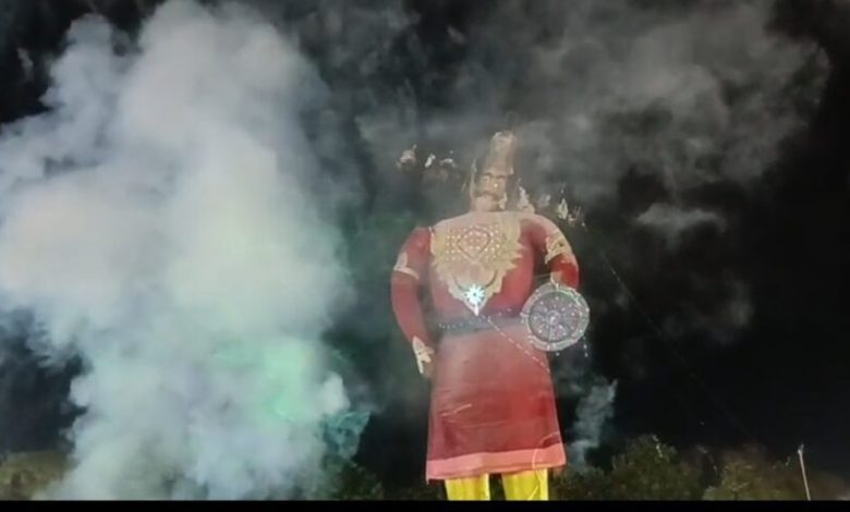 कोरबा के लाल मैदान में 120 फीट ऊँचे रावण का दहन, हजारों की भीड़ बनी साक्षी