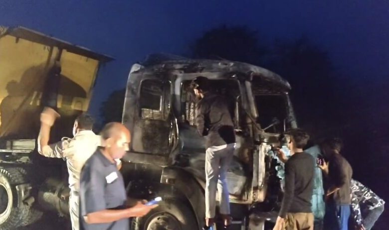जांजगीर-चांपा के एनएच-49 पर चलती ट्रेलर में अचानक आग, बड़ा हादसा टला