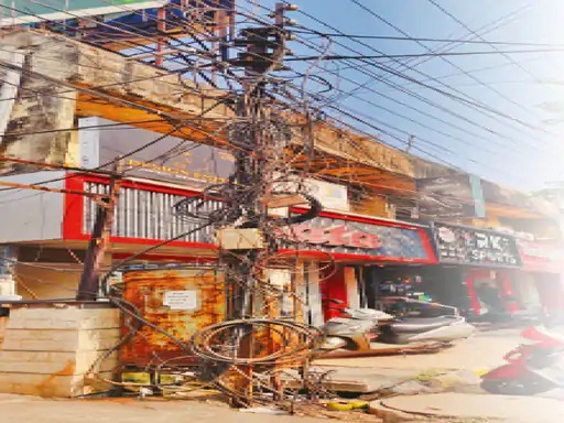 शहर के खंभों पर केबल का जाल सौ रुपए किराये के लिए सुरक्षा से खिलवाड़